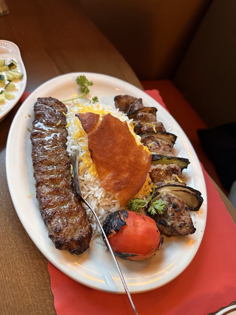 For those seeking variety, the Kabab Kaboudeh offers a delectable mix of beef, lamb, and chicken. The kebabs are perfectly paired with traditional sides like dough, a yogurt-based drink, and Shereen Polo, a dish of fragrant rice with orange peel and pistachio nuts, which adds an unexpected sweetness to the meal.